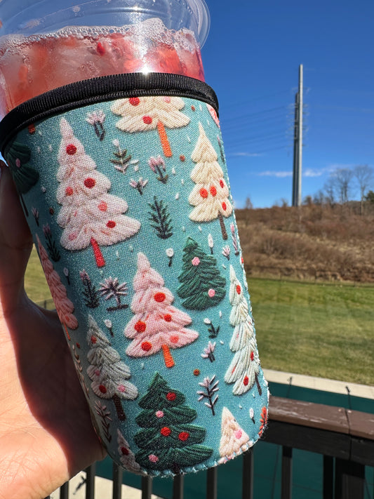 3d knitted trees cup coozie