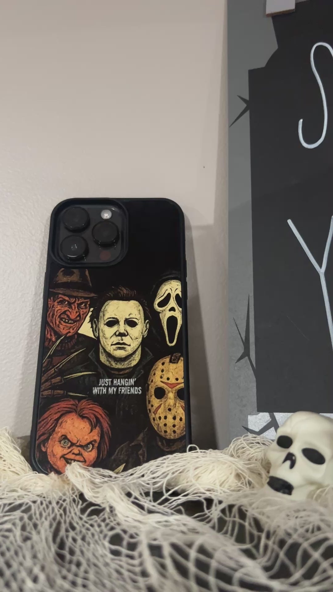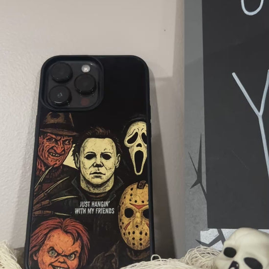 Introducing the Scary friends Phone case, featuring your favorite spooky movie characters chilling together! Show off your love for scary season with this one-of-a-kind phone case.