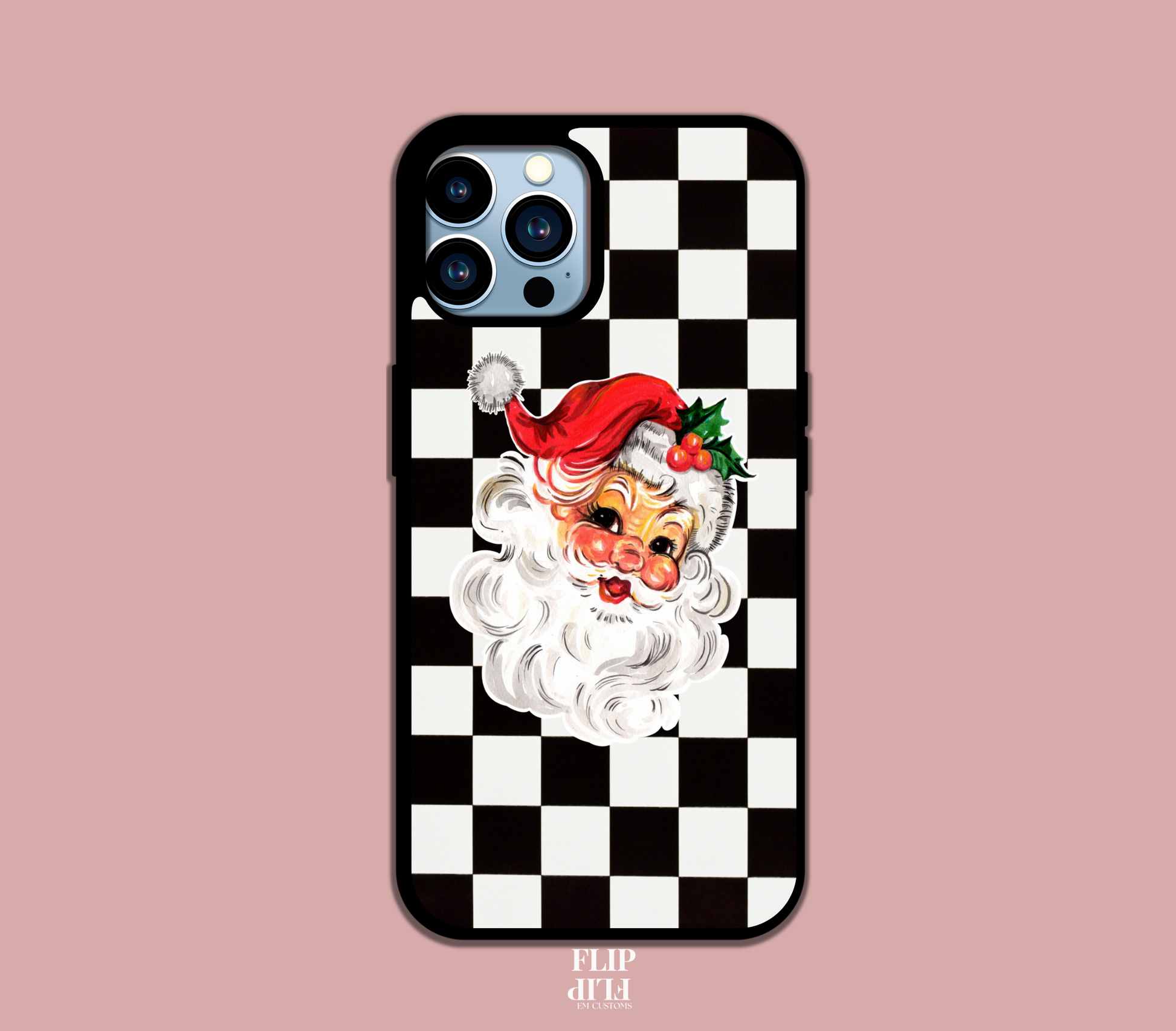 Rock that retro holiday vibe with the Vintage clause phone case featuring a black and white pattern!